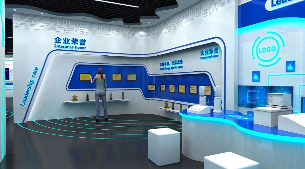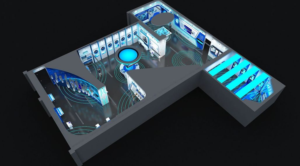 設(shè)計(jì)思路:以深邃的藍(lán)色為主調(diào),展現(xiàn)ICT高科技的深邃與廣闊。運(yùn)用現(xiàn)代科技手段,打造互動(dòng)體驗(yàn)區(qū),展示最新技術(shù)成果。空間布局簡(jiǎn)潔明快,突出科技感與未來(lái)感,營(yíng)造專(zhuān)業(yè)、高效的展示氛圍,吸引觀眾目光。