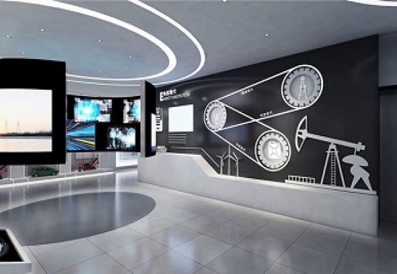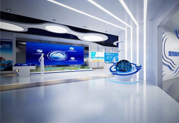城市:山東青島,時間:2015年7月-9月。設計理念:電力科技公司展廳以黑色為底,藍色凸顯科技力量,布局合理,聲光電結合,展現(xiàn)企業(yè)風采 -
