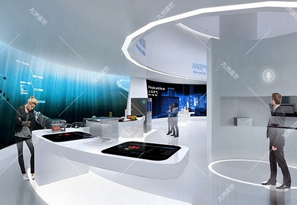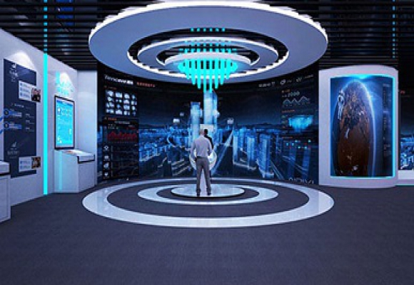 城市:山東濟寧,時間:2020年8月-10月.設計理念:科技展廳布局現(xiàn)代,黑色深邃,藍色科技,聲光電互動,打造科技盛宴 -