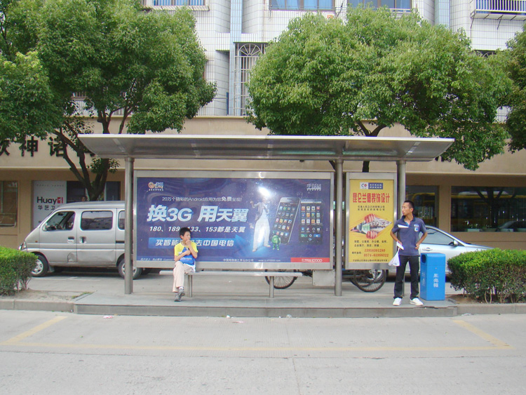 公交車候車亭一般是與公交站牌相配套的,為方便公交乘客候車時遮陽、防雨等,在車站、道路兩旁或綠化帶的港灣式公交停靠站上建設的交通設施。由于城市公交的日益發達,候車亭已發展成為城市一個不可或缺的重要組成部分,設計精美的候車亭也成為了城市一道美麗的風景。 一般候車亭棚體主要頂棚、立柱、頂弓、廣告燈箱和坐凳組成,也有用隔板來代替廣告燈箱的。
