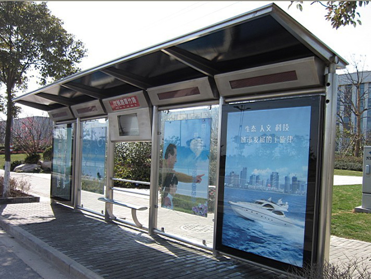 公交車候車亭一般是與公交站牌相配套的,為方便公交乘客候車時遮陽、防雨等,在車站、道路兩旁或綠化帶的港灣式公交停靠站上建設的交通設施。由于城市公交的日益發(fā)達,候車亭已發(fā)展成為城市一個不可或缺的重要組成部分,設計精美的候車亭也成為了城市一道美麗的風景。 一般候車亭棚體主要頂棚、立柱、頂弓、廣告燈箱和坐凳組成,也有用隔板來代替廣告燈箱的。