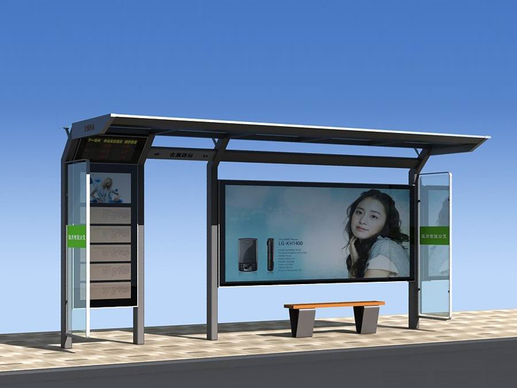 公交車候車亭一般是與公交站牌相配套的,為方便公交乘客候車時遮陽、防雨等,在車站、道路兩旁或綠化帶的港灣式公交停靠站上建設的交通設施。由于城市公交的日益發達,候車亭已發展成為城市一個不可或缺的重要組成部分,設計精美的候車亭也成為了城市一道美麗的風景。 一般候車亭棚體主要頂棚、立柱、頂弓、廣告燈箱和坐凳組成,也有用隔板來代替廣告燈箱的。