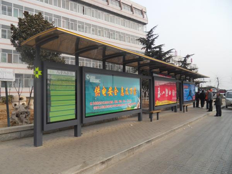 公交車候車亭一般是與公交站牌相配套的,為方便公交乘客候車時遮陽、防雨等,在車站、道路兩旁或綠化帶的港灣式公交停靠站上建設的交通設施。由于城市公交的日益發達,候車亭已發展成為城市一個不可或缺的重要組成部分,設計精美的候車亭也成為了城市一道美麗的風景。 一般候車亭棚體主要頂棚、立柱、頂弓、廣告燈箱和坐凳組成,也有用隔板來代替廣告燈箱的。