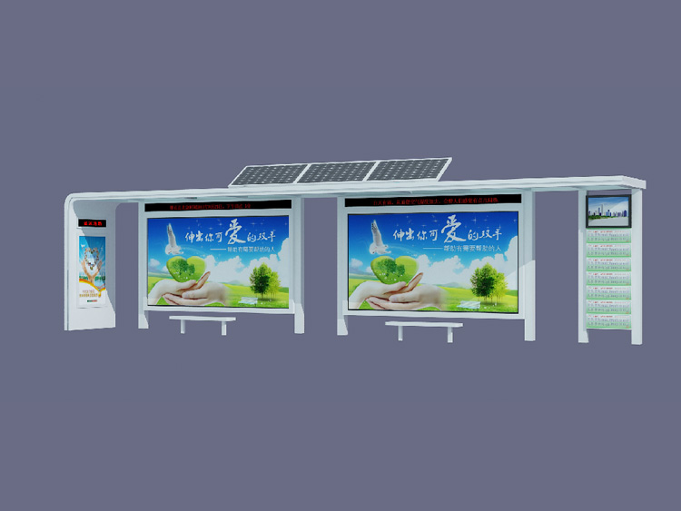公交車(chē)候車(chē)亭一般是與公交站牌相配套的,為方便公交乘客候車(chē)時(shí)遮陽(yáng)、防雨等,在車(chē)站、道路兩旁或綠化帶的港灣式公交停靠站上建設(shè)的交通設(shè)施。由于城市公交的日益發(fā)達(dá),候車(chē)亭已發(fā)展成為城市一個(gè)不可或缺的重要組成部分,設(shè)計(jì)精美的候車(chē)亭也成為了城市一道美麗的風(fēng)景。 一般候車(chē)亭棚體主要頂棚、立柱、頂弓、廣告燈箱和坐凳組成,也有用隔板來(lái)代替廣告燈箱的。