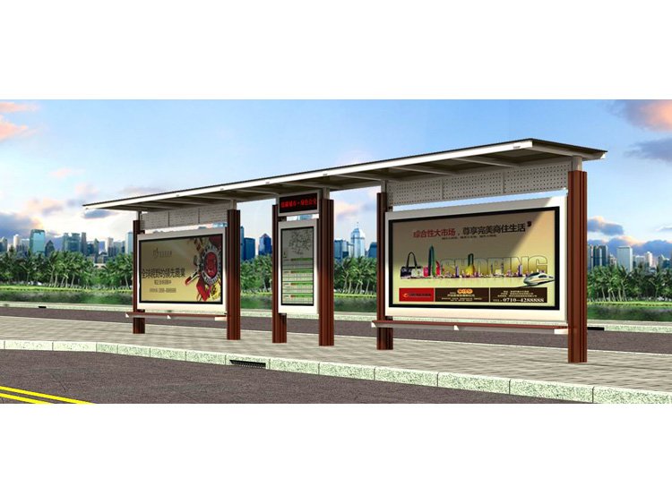 公交車候車亭一般是與公交站牌相配套的,為方便公交乘客候車時遮陽、防雨等,在車站、道路兩旁或綠化帶的港灣式公交停靠站上建設(shè)的交通設(shè)施。由于城市公交的日益發(fā)達,候車亭已發(fā)展成為城市一個不可或缺的重要組成部分,設(shè)計精美的候車亭也成為了城市一道美麗的風景。 一般候車亭棚體主要頂棚、立柱、頂弓、廣告燈箱和坐凳組成,也有用隔板來代替廣告燈箱的。