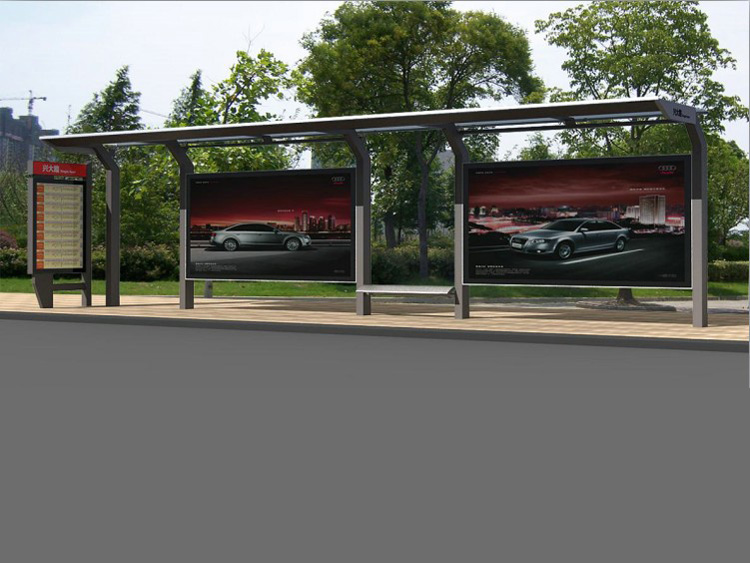 公交車候車亭一般是與公交站牌相配套的,為方便公交乘客候車時遮陽、防雨等,在車站、道路兩旁或綠化帶的港灣式公交停靠站上建設的交通設施。由于城市公交的日益發達,候車亭已發展成為城市一個不可或缺的重要組成部分,設計精美的候車亭也成為了城市一道美麗的風景。 一般候車亭棚體主要頂棚、立柱、頂弓、廣告燈箱和坐凳組成,也有用隔板來代替廣告燈箱的。