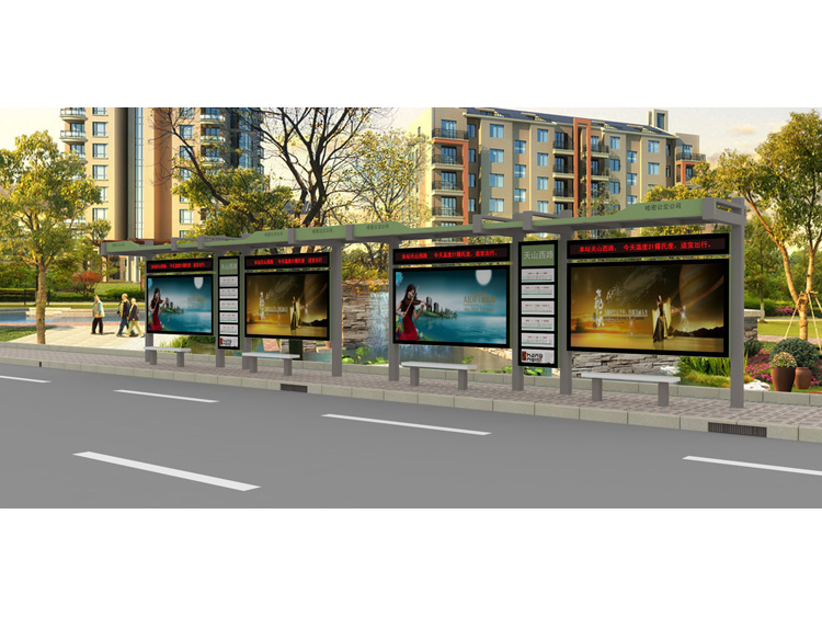 公交車候車亭一般是與公交站牌相配套的,為方便公交乘客候車時遮陽、防雨等,在車站、道路兩旁或綠化帶的港灣式公交?空旧辖ㄔO的交通設施。由于城市公交的日益發達,候車亭已發展成為城市一個不可或缺的重要組成部分,設計精美的候車亭也成為了城市一道美麗的風景。 一般候車亭棚體主要頂棚、立柱、頂弓、廣告燈箱和坐凳組成,也有用隔板來代替廣告燈箱的。