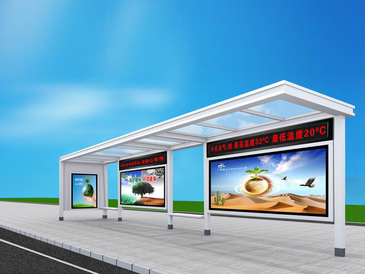 公交車候車亭一般是與公交站牌相配套的,為方便公交乘客候車時遮陽、防雨等,在車站、道路兩旁或綠化帶的港灣式公交?空旧辖ㄔO的交通設施。由于城市公交的日益發達,候車亭已發展成為城市一個不可或缺的重要組成部分,設計精美的候車亭也成為了城市一道美麗的風景。 一般候車亭棚體主要頂棚、立柱、頂弓、廣告燈箱和坐凳組成,也有用隔板來代替廣告燈箱的。