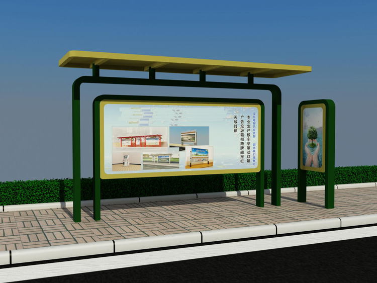 公交車候車亭一般是與公交站牌相配套的,為方便公交乘客候車時遮陽、防雨等,在車站、道路兩旁或綠化帶的港灣式公交?空旧辖ㄔO的交通設施。由于城市公交的日益發達,候車亭已發展成為城市一個不可或缺的重要組成部分,設計精美的候車亭也成為了城市一道美麗的風景。 一般候車亭棚體主要頂棚、立柱、頂弓、廣告燈箱和坐凳組成,也有用隔板來代替廣告燈箱的。