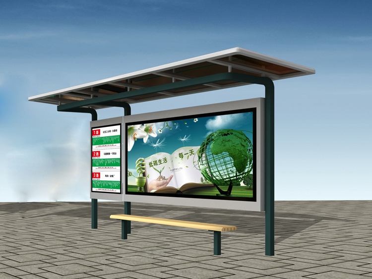 公交車候車亭一般是與公交站牌相配套的,為方便公交乘客候車時遮陽、防雨等,在車站、道路兩旁或綠化帶的港灣式公交?空旧辖ㄔO的交通設施。由于城市公交的日益發達,候車亭已發展成為城市一個不可或缺的重要組成部分,設計精美的候車亭也成為了城市一道美麗的風景。 一般候車亭棚體主要頂棚、立柱、頂弓、廣告燈箱和坐凳組成,也有用隔板來代替廣告燈箱的。