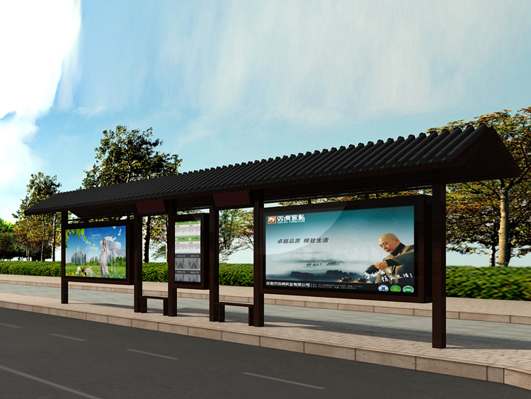 公交車候車亭一般是與公交站牌相配套的,為方便公交乘客候車時遮陽、防雨等,在車站、道路兩旁或綠化帶的港灣式公交停靠站上建設的交通設施。由于城市公交的日益發達,候車亭已發展成為城市一個不可或缺的重要組成部分,設計精美的候車亭也成為了城市一道美麗的風景。 一般候車亭棚體主要頂棚、立柱、頂弓、廣告燈箱和坐凳組成,也有用隔板來代替廣告燈箱的。