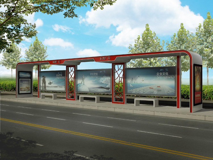 公交車候車亭一般是與公交站牌相配套的,為方便公交乘客候車時遮陽、防雨等,在車站、道路兩旁或綠化帶的港灣式公交?空旧辖ㄔO的交通設施。由于城市公交的日益發達,候車亭已發展成為城市一個不可或缺的重要組成部分,設計精美的候車亭也成為了城市一道美麗的風景。 一般候車亭棚體主要頂棚、立柱、頂弓、廣告燈箱和坐凳組成,也有用隔板來代替廣告燈箱的。