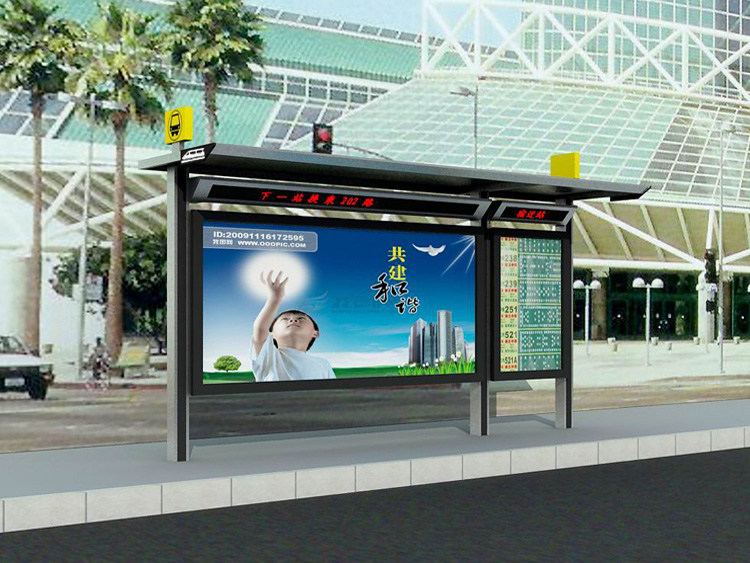 公交車候車亭一般是與公交站牌相配套的,為方便公交乘客候車時遮陽、防雨等,在車站、道路兩旁或綠化帶的港灣式公交?空旧辖ㄔO的交通設施。由于城市公交的日益發達,候車亭已發展成為城市一個不可或缺的重要組成部分,設計精美的候車亭也成為了城市一道美麗的風景。 一般候車亭棚體主要頂棚、立柱、頂弓、廣告燈箱和坐凳組成,也有用隔板來代替廣告燈箱的。