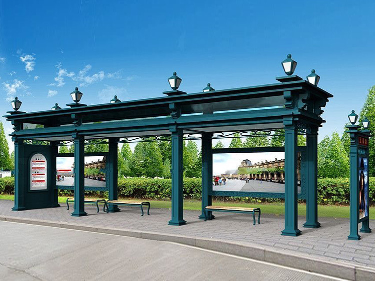 公交車候車亭一般是與公交站牌相配套的,為方便公交乘客候車時遮陽、防雨等,在車站、道路兩旁或綠化帶的港灣式公交?空旧辖ㄔO的交通設施。由于城市公交的日益發達,候車亭已發展成為城市一個不可或缺的重要組成部分,設計精美的候車亭也成為了城市一道美麗的風景。 一般候車亭棚體主要頂棚、立柱、頂弓、廣告燈箱和坐凳組成,也有用隔板來代替廣告燈箱的。