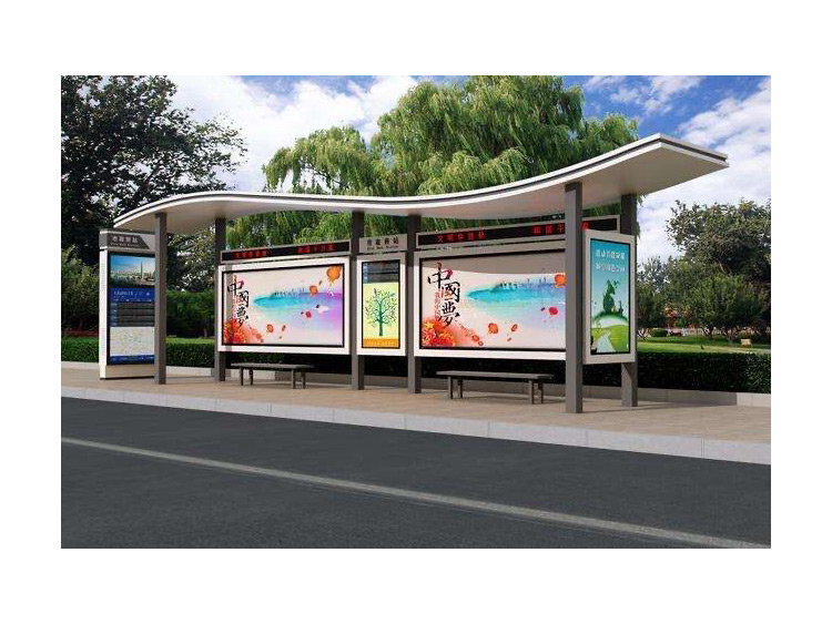 公交車候車亭一般是與公交站牌相配套的,為方便公交乘客候車時(shí)遮陽、防雨等,在車站、道路兩旁或綠化帶的港灣式公交停靠站上建設(shè)的交通設(shè)施。由于城市公交的日益發(fā)達(dá),候車亭已發(fā)展成為城市一個(gè)不可或缺的重要組成部分,設(shè)計(jì)精美的候車亭也成為了城市一道美麗的風(fēng)景。 一般候車亭棚體主要頂棚、立柱、頂弓、廣告燈箱和坐凳組成,也有用隔板來代替廣告燈箱的。