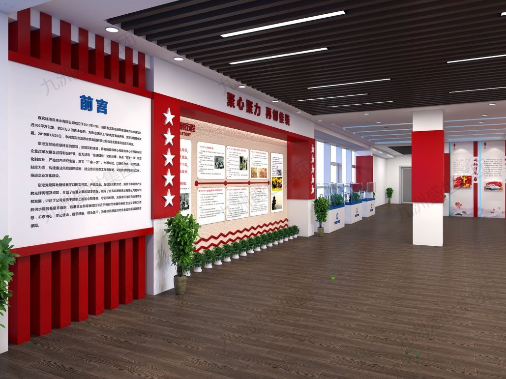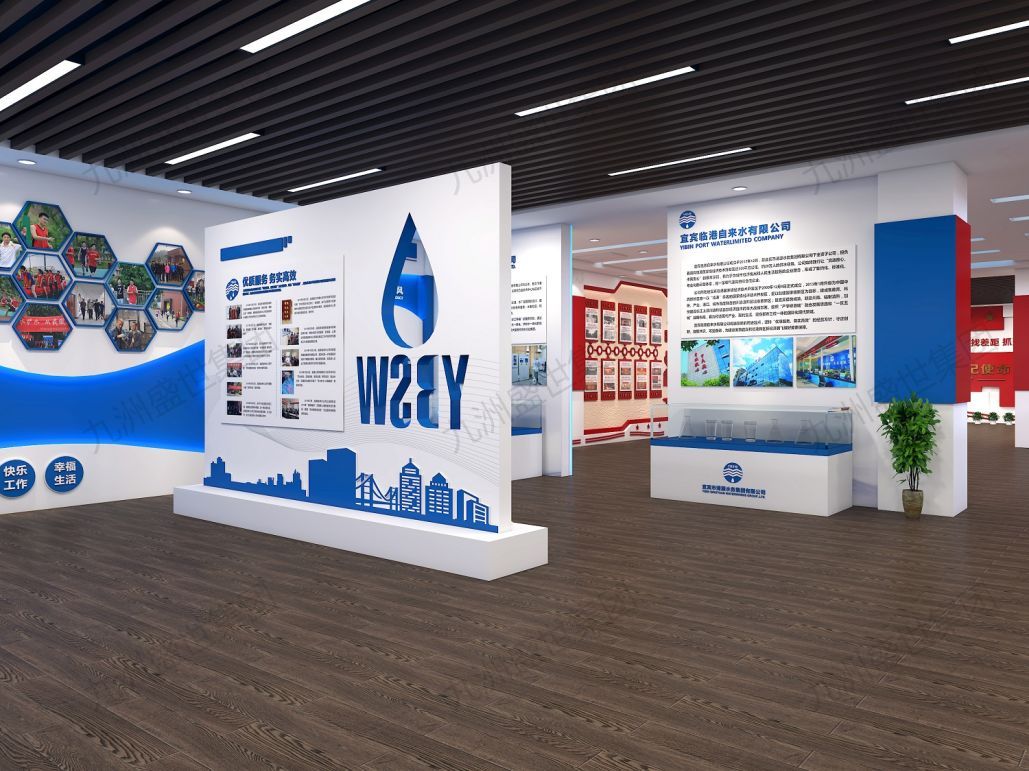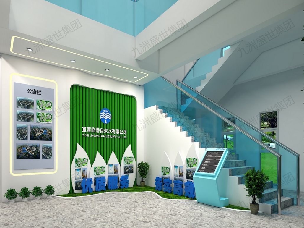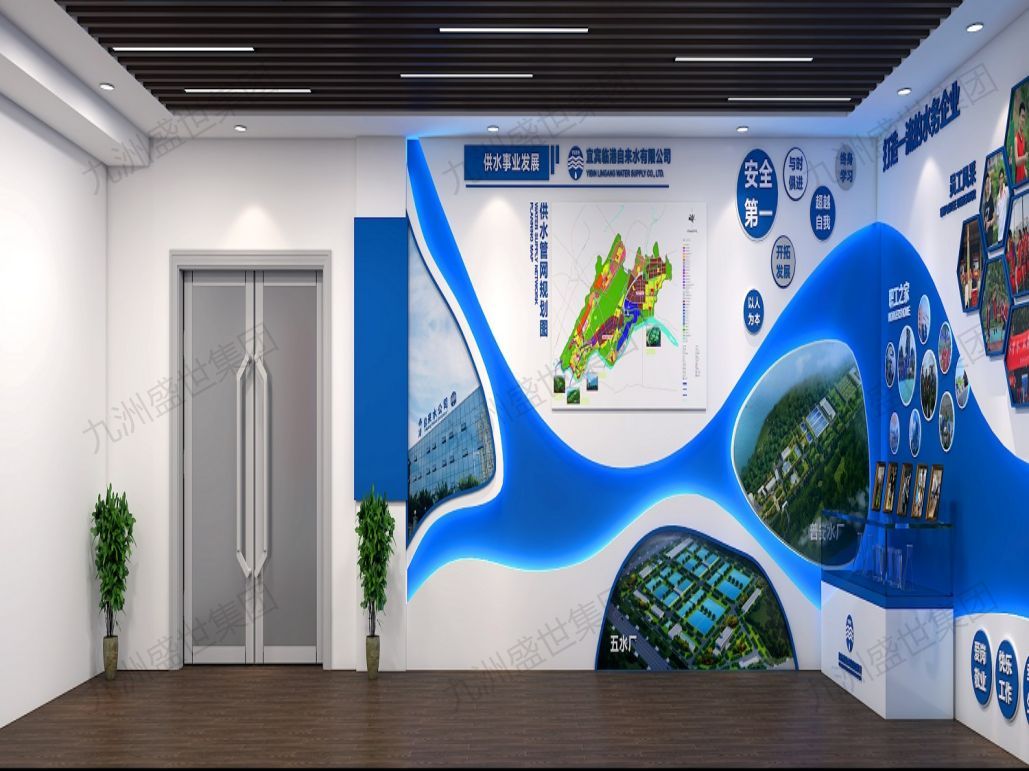 設(shè)計思路:以傳承與弘揚水務(wù)文化為核心,通過歷史展示、技術(shù)解讀、互動體驗等形式,展現(xiàn)水務(wù)行業(yè)的深厚底蘊與公司特色。運用現(xiàn)代設(shè)計手法,融合傳統(tǒng)元素,打造兼具時代感與文化氣息的展示空間,增強員工歸屬感,提升公司品牌形象。