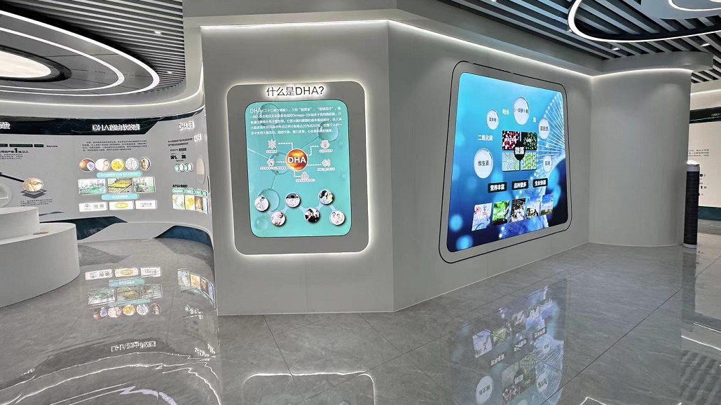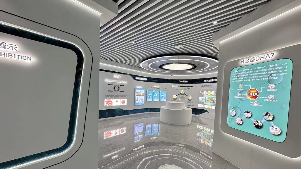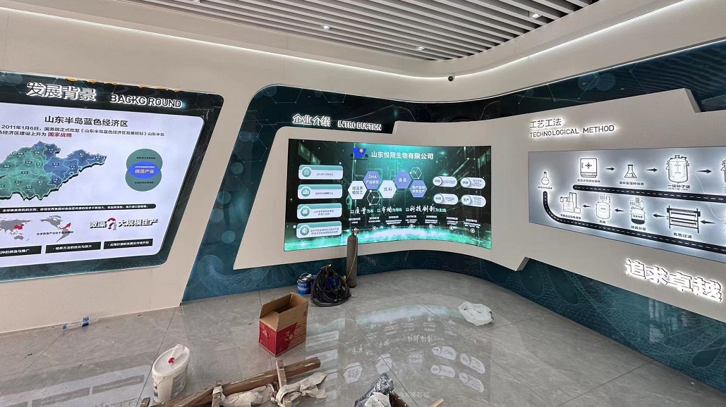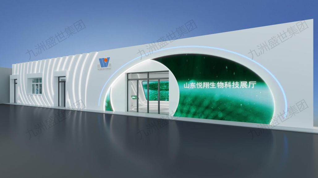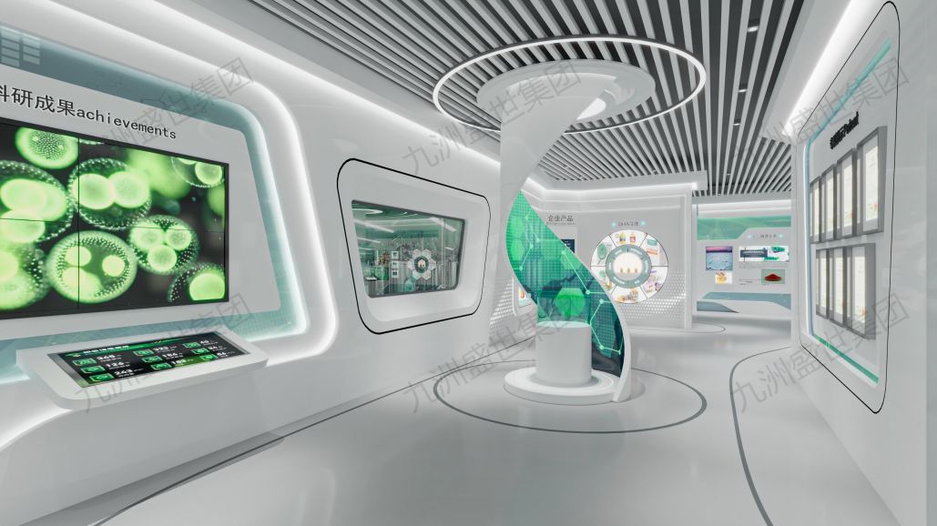 城市:山東濱州,時間:2023年11月-12月。設(shè)計理念:展廳布局清新,白色與綠色交融,聲光電交織,展現(xiàn)生物科技之美,呈現(xiàn)生物科技前沿。