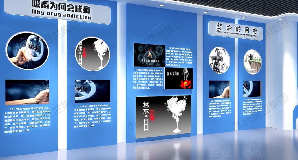 設(shè)計思路:通過圖文、影像資料展示毒品的種類、危害和濫用后果,增強參觀者的禁毒意識。設(shè)置模擬毒品濫用場景,讓參觀者通過互動體驗了解毒品的危害。