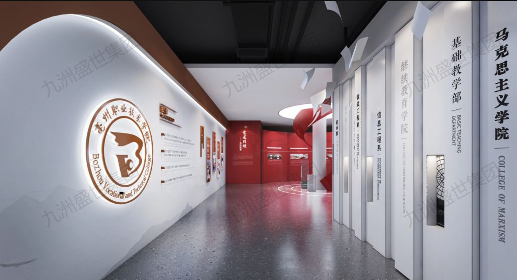 設(shè)計思路:以現(xiàn)代科技為引領(lǐng),打造充滿未來感的展示空間。運用數(shù)字化、互動化等先進手段,生動呈現(xiàn)學校的發(fā)展歷程、教學成果與創(chuàng)新實踐。整體設(shè)計簡潔大氣,突顯科技魅力,讓參觀者深刻感受學院的現(xiàn)代化與前瞻性。