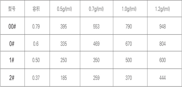 我公司硬膠囊標準共分為00、0、1、2、3、4、5號,號數越大,容積越小。