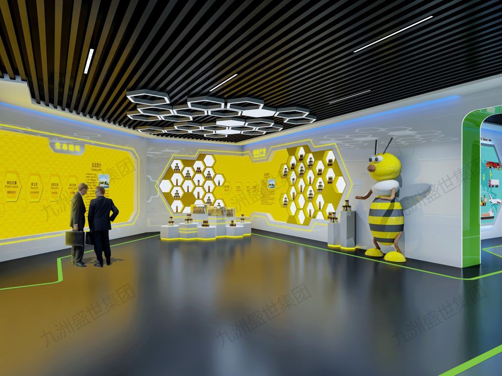 城市:山東臨沂,時間:2021年8月-10月。設計理念:蜂巢科技展廳布局獨特,白色為主調,黃色綠色點綴,展示蜂巢創(chuàng)新產品魅力,突顯蜂巢科技產品的獨特。