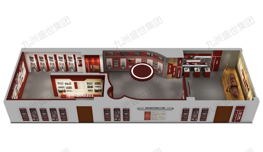 設(shè)計(jì)思路:展廳應(yīng)以清晰的時(shí)間線展示黨的歷史發(fā)展脈絡(luò),包括黨的成立、發(fā)展壯大、各個(gè)歷史時(shí)期的重大事件和決策等。通過(guò)圖文、影像資料,讓參觀者了解黨的光輝歷程和豐功偉績(jī)。